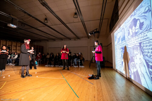 10 partecipanti, 80 ore di formazione in ambito moda, 7 professionistɜ coinvoltɜ, Produzione di una linea di abbigliamento streetwear ispirata alla letteratura transfemminista e di un fumetto che racconta 6 storie ispirate dalle giovani partecipanti: SCIAME